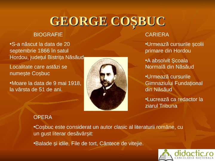 Mihail Sadoveanu a fost un scriitor, povestitor, nuvelist, romancier, academician și om politic român. Este unul dintre cei mai importanți și prolifici prozatori români din prima jumătate a secolului al XX-lea, având o carieră ce se întinde pe parcursul a cincizeci de ani.